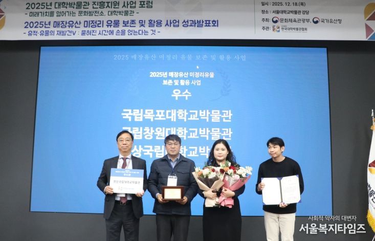 서울복지타임즈 이재연 기자 | 경상국립대학교 박물관이 2025년 매장유산 미정리유물 보존 및 활용사업 평가에서 ‘우수관’으로 선정돼, 지난해 최우수기관 선정에 이어 2년 연속 우수성을 인정받는 성과를 거두었다.