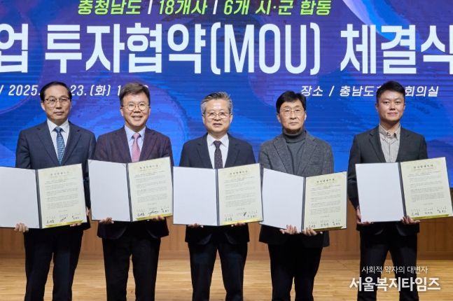 한편 이번 협약은 충남도 내 6개 시·군, 18개 기업이 참여한 합동 투자협약의 일환으로 진행됐다. 충남연구원 분석에 따르면, 이들 기업의 투자가 본격화될 경우 충남 전반에 생산유발 96조 원, 부가가치유발 40조 원, 고용유발 5,400명 규모의 경제적 파급효과가 기대된다.