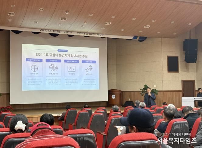 서울복지타임즈 이재연 기자 | 부여군농업기술센터는 센터 내 대강당에서 농업인 단체장과 시범사업 참여 농가 등 150여 명이 참석한 가운데, '2025년 농촌진흥사업 종합 평가회'를 개최했다고 24일 밝혔다.