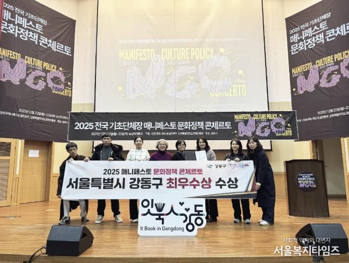 서울복지타임즈 이재연 기자 | 서울 강동구는 23일 열린 ‘2025 매니페스토 문화정책 콘체르토’에서 ‘문화기반 도시활력 분야’ 최우수상을 수상했다고 밝혔다.