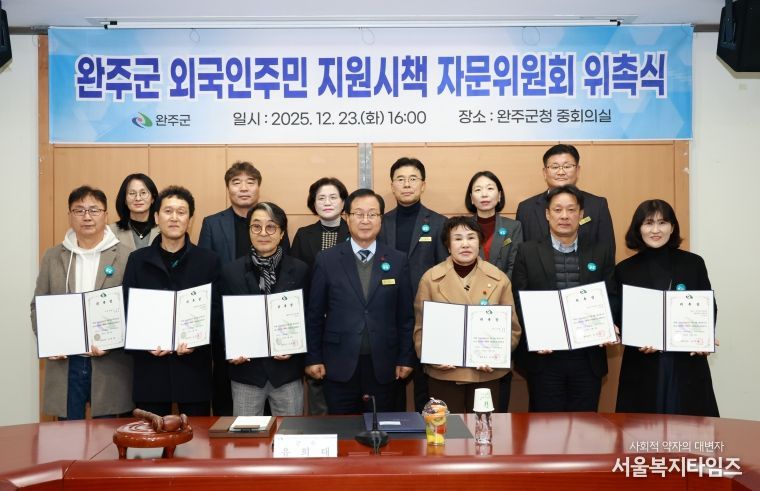 서울복지타임즈 이재연 기자 | 완주군이 외국인 주민 지원 정책의 체계적 추진을 위해 ‘외국인주민 지원시책 자문위원회’를 구성하고, 지난 23일 중회의실에서 위촉식을 열었다.