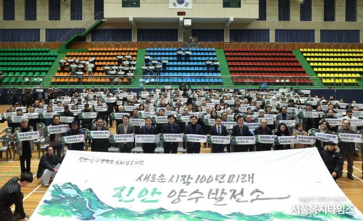 서울복지타임즈 이재연 기자 | 진안군이 26일 오후 진안문예체육회관에서 군민 500여 명과 주요 내빈이 참석한 가운데 ‘진안양수발전소 유치 성공기원 범군민 결의대회’를 성황리에 마무리하고, 유치 성공에 대한 강력한 의지를 대내외에 선포했다.