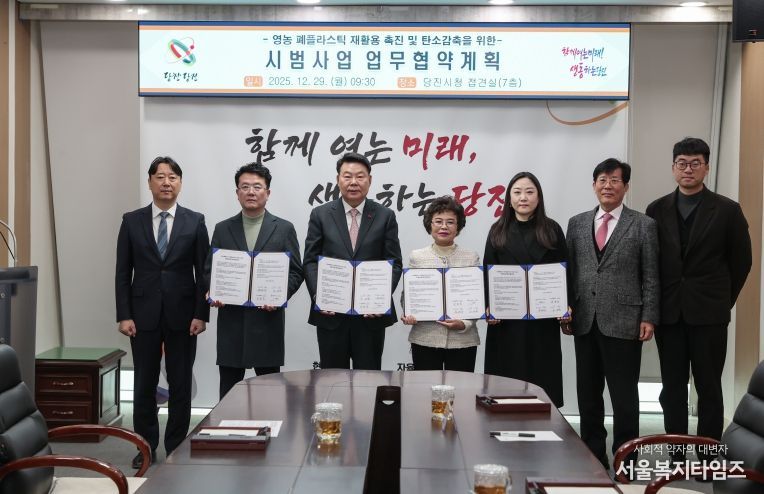 서울복지타임즈 이재연 기자 | 당진시는 12월 29일 당진시청 7층 접견실에서 당진시, 당진시 이장단협의회, ㈜그린폴리텍, ㈜리코와 함께 ‘영농 폐플라스틱 재활용 촉진 및 탄소감축 시범사업’업무협약을 체결했다고 밝혔다.