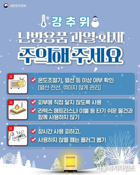 - 온도조절기, 열선 등 이상 여부 확인(열선·전선, 꺾이지 않게 관리)