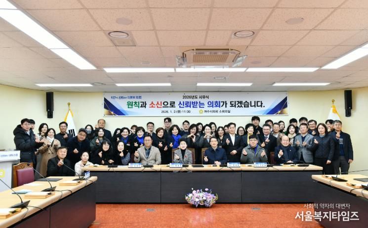 서울복지타임즈 이재연 기자 | 여수시의회는 1월 2일 의회 소회의실에서 2026년 시무식을 개최하고, 본격적인 의정활동에 앞서 반부패·청렴서약을 실시하며 새해 의정 운영의 출발을 알렸다.