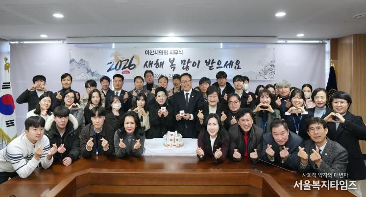 서울복지타임즈 이재연 기자 | 아산시의회는 1월 2일 오전 10시 30분, 의회동 다목적회의실에서 2026년도 시무식을 개최하고 새해 의정활동의 힘찬 출발을 알렸다.