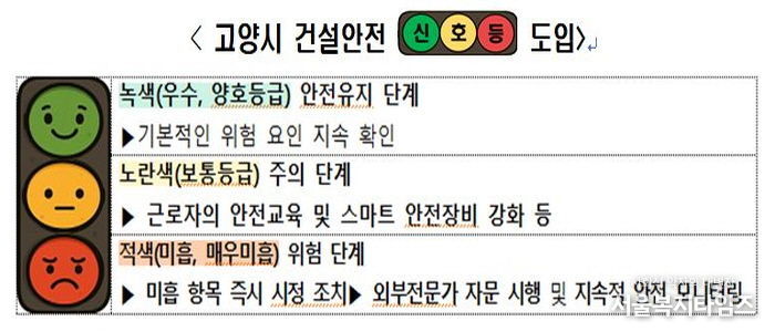 서울복지타임즈 이재연 기자 | 고양특례시가 관내 건설공사장의 안전관리를 강화하기 위해 ‘건설안전 신호등’을 도입하고, 안전관리 우수 건설 현장을 선정·확산하는 정책을 본격 추진한다.
