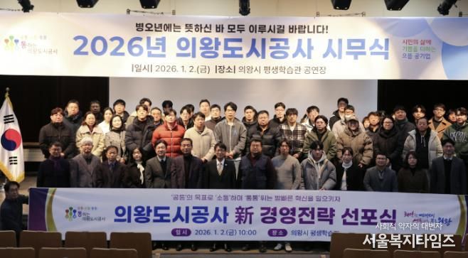 서울복지타임즈 이재연 기자 | 의왕도시공사는 1월 2일 평생학습관 공연장에서 열린 시무식에서 ‘신경영전략 선포식’을 개최하고, 급변하는 경영환경에 대응하기 위한 새로운 전략 방향과 실행 과제를 공식 발표했다.