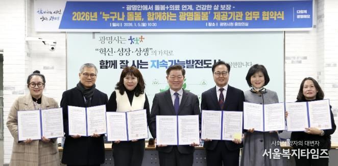 시는 5일 시청 중회의실에서 관내 한의원, 의원, 요양센터 등 41개 돌봄서비스 기관과 ‘누구나 돌봄, 함께하는 광명돌봄’ 서비스 업무협약을 체결했다.