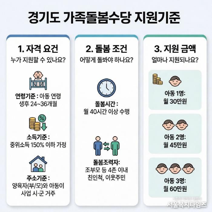 서울복지타임즈 이재연 기자 | 경기도 가족돌봄수당 사업 참여 시군이 지난해 14개에서 올해 26개 시군으로 늘어남에 따라 더 많은 도민들이 돌봄사업 혜택을 받게 됐다.