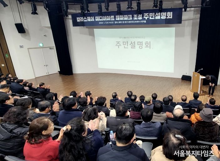서울복지타임즈 이재연 기자 | 대구 수성구는 7일 칼라스퀘어(대구스타디움몰) 내 시청자미디어센터 다목적홀에서 ‘칼라스퀘어 미디어아트 테마파크 조성 주민설명회’를 개최했다.