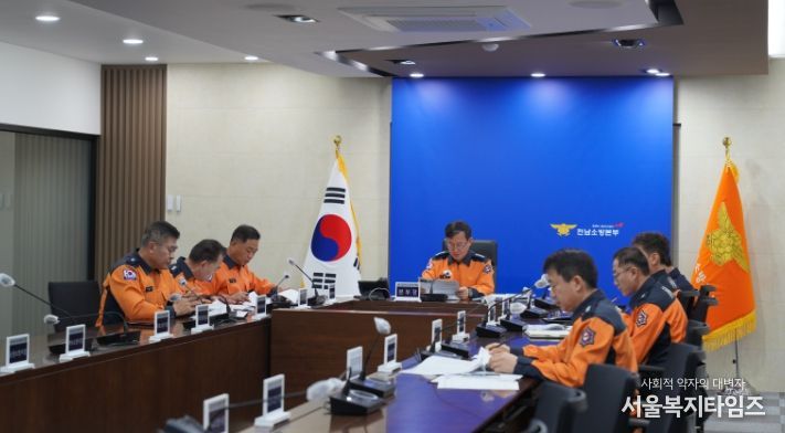 서울복지타임즈 이재연 기자 | 전남소방본부(본부장 주영국)는 9일, 오는 12일까지 이어질 것으로 예보된 기상 악화에 선제적으로 대응하기 위해 전남 도내 22개 소방관서가 참여하는 ‘대설·한파 대비 소방관서 대처상황 점검회의’를 개최했다고 밝혔다.