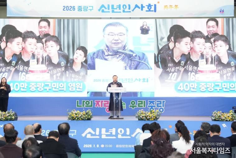 서울복지타임즈 이재연 기자 | 중랑구가 지난 9일 오후 중랑문화체육관에서 구민 1,200여 명이 참석한 가운데 2026년 신년인사회를 개최했다.