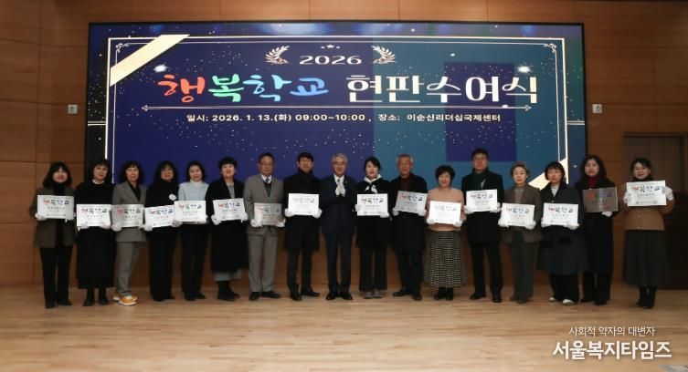 서울복지타임즈 이재연 기자 | 경상남도교육청은 2026년 신규 지정 행복학교 교직원 100명을 대상으로 13~15일 이순신리더십국제센터에서 직무 연수와 신규 및 재지정 행복학교 현판 수여식을 열었다.