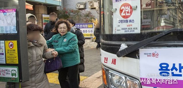 서울복지타임즈 이재연 기자 | 박희영 서울 용산구청장이 서울시내버스 파업으로 출퇴근길 교통 혼잡이 우려되는 가운데, 13일 오전 무료 셔틀버스 운행 현장을 직접 찾아 출근길 주민 불편 사항을 점검했다.