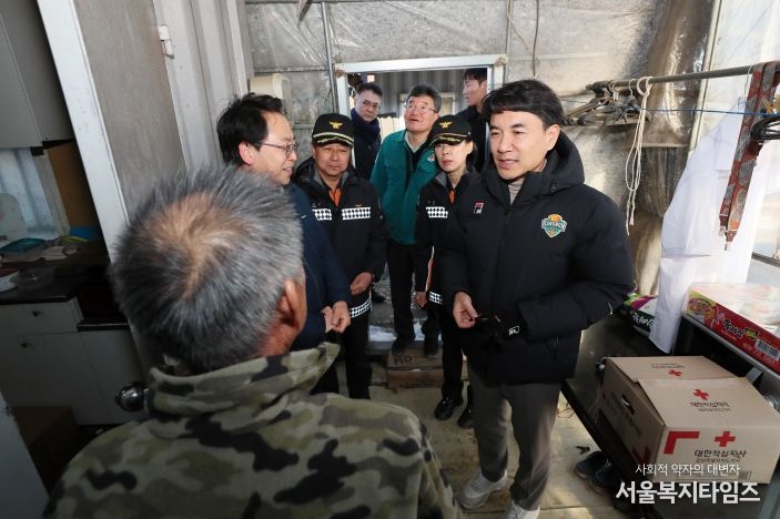 서울복지타임즈 이재연 기자 | 김진태 강원특별자치도지사는 1월 13일 밤부터 도내 한파주의보가 발효될 전망에 따라 춘천시 신동면에 위치한 비주택 주거지를 방문해 주거환경 취약계층의 겨울철 안전대책을 점검했다.