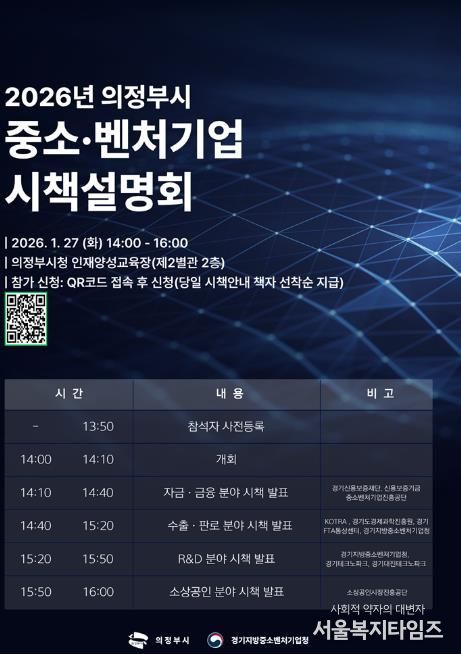 서울복지타임즈 이재연 기자 | 의정부시는 ‘2026년 중소‧벤처기업 시책설명회’에 참가할 지역 중소‧벤처기업인을 1월 26일까지 모집한다.