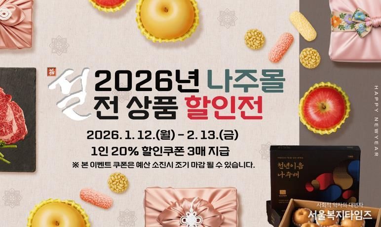 나주시 관계자는 “설 명절을 맞아 시민과 소비자들이 부담 없이 우수한 나주 농특산물을 만나볼 수 있도록 할인 폭과 혜택을 강화했다”며 “2026년 나주 방문의 해를 계기로 앞으로도 다양한 기획전을 통해 나주몰 이용 만족도를 높여가겠다”고 말했다.
