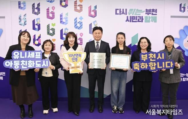 서울복지타임즈 이재연 기자 | 부천시는 유니세프 한국위원회로부터 ‘유니세프 아동친화도시’ 인증을 갱신했다고 14일 밝혔다. 이번 인증은 2019년 12월 최초 인증에 이어 자격을 유지한 것으로, 유효기간은 2029년 12월 30일까지다.