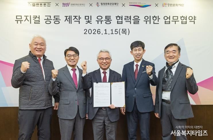 서울복지타임즈 이재연 기자 | 밀양문화관광재단은 지난 15일 세종문화회관 귀빈실에서 세종문화회관과 ‘뮤지컬 공동 제작 및 유통 협력을 위한 업무협약(MOU)’을 체결했다.