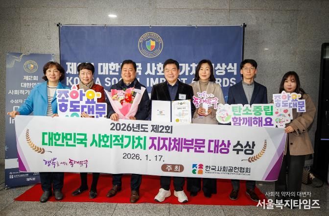 서울복지타임즈 이재연 기자 | 서울 동대문구가 한국사회공헌협회가 주최한 ‘제2회 대한민국 사회적가치 대상’에서 지자체 부문 대상을 수상했다고 17일 밝혔다. 구가 내세운 키워드는 거창한 구호가 아니라 ‘일상에서 돌아가는 탄소중립’이다. 전통시장에서 에코백이 돌고, 공동주택에서는 불을 끄고 영화를 보며 에너지 절감을 체감하는 방식처럼 주민이 참여하는 실천을 정책으로 연결해 확산시킨 점이 높은 평가를 받았다는 설명이다.