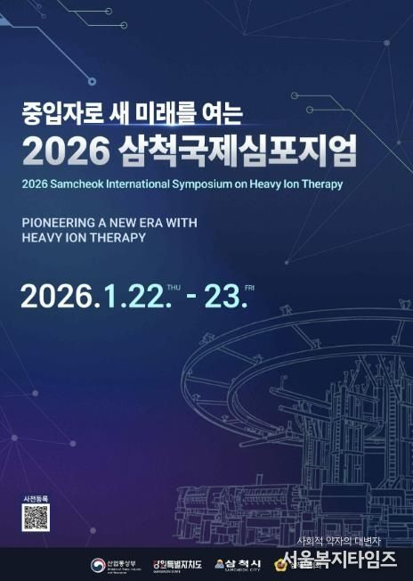 서울복지타임즈 이재연 기자 | 삼척시는 오는 1월 22일부터 23일까지 이틀간 쏠비치 삼척 그랜드볼룸에서 '중입자로 새 미래를 여는 2026 삼척 국제 심포지엄'을 개최한다.