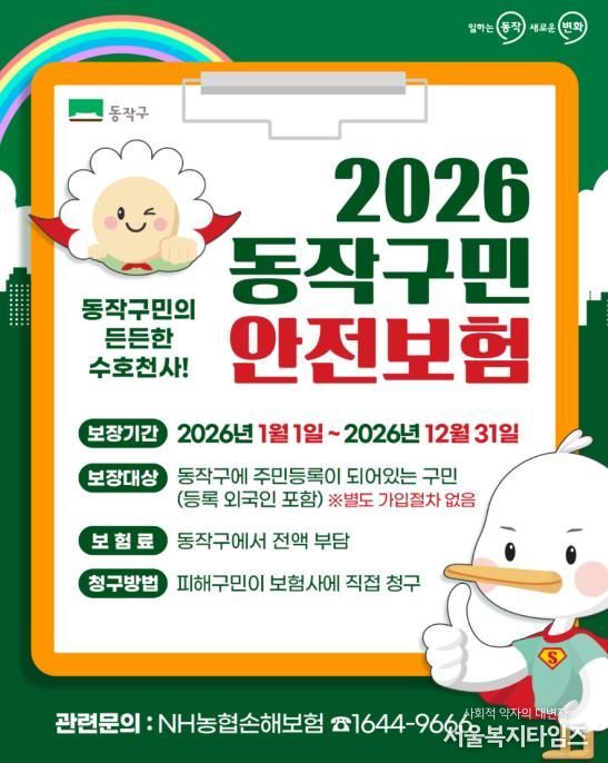 서울복지타임즈 이재연 기자 | 동작구는 2026년부터 ‘구민안전보험’을 확대 운영한다고 19일 밝혔다.