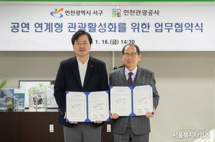 서울복지타임즈 이재연 기자 | 인천 서구는 지난 16일 인천관광공사(사장 유지상)와 ‘공연 연계형 관광 활성화를 위한 업무협약’을 체결했다고 밝혔다.