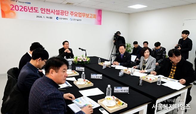 서울복지타임즈 이재연 기자 | 인천광역시는 1월 19일 청소년수련관에서 인천시설공단의 2026년도 주요 업무계획과 현안 사항을 공유하고, 애로사항을 청취하는 등 현장 소통의 시간을 가졌다.