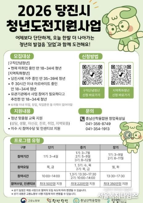 서울복지타임즈 이재연 기자 | 당진시는 고용노동부가 주관하는‘청년도전지원사업’에 올해에도 선정돼 연중 참여자를 모집한다고 20일 밝혔다.
