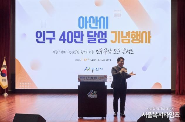 서울복지타임즈 이재연 기자 | 아산시는 지난 19일 아산시청 시민홀에서 인구 40만을 넘어 50만 자족도시로 나아가기 위한 '아산시 인구 40만 달성 기념행사'를 성황리에 마쳤다.