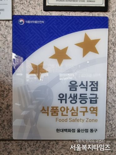 서울복지타임즈 이재연 기자 | 울산 동구는 안전한 외식환경 조성을 위해 관내 다수의 주민이 이용하는 현대백화점 울산점 동구(옛 현대백화점 울산동구점)를 ‘식품 안심 구역’으로 지정했다.