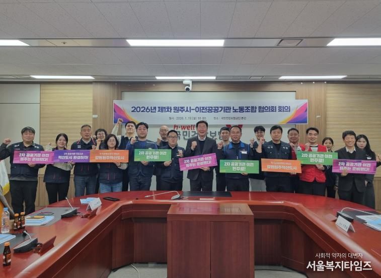 서울복지타임즈 이재연 기자 | 원주시는 지난 19일 강원혁신도시 이전공공기관 노동조합 협의회와 함께 혁신도시 정주 여건 개선과 지속 가능한 발전을 위한 주요 현안을 논의했다.
