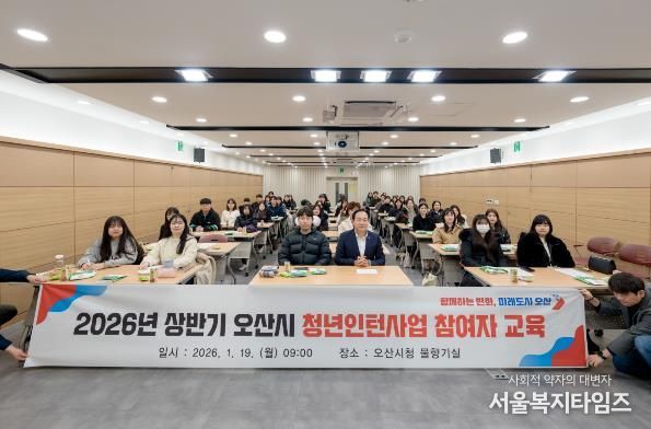 서울복지타임즈 이재연 기자 | 오산시는 지난 19일 시청 물향기실에서 상반기 청년인턴 46명을 대상으로 직무역량 강화교육을 실시했다고 밝혔다.