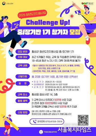 서울복지타임즈 이재연 기자 | 횡성군은 지역 청년들의 사회 진출과 성장을 지원하기 위해 ‘2026 청년도전지원사업’ 참여자를 모집한다고 밝혔다.