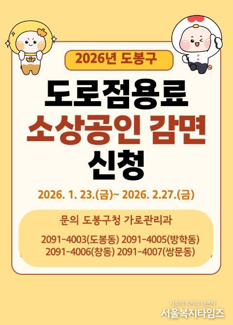 서울복지타임즈 이재연 기자 | 서울 도봉구가 지역 소상공인을 대상으로 도로점용료를 25% 감면한다. 경기침체로 어려움을 겪는 지역 소상공인의 경제적 부담을 완화하기 위해서다.