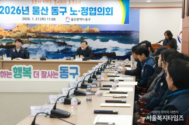 서울복지타임즈 이재연 기자 | 울산 동구는 1월 27일 오전 11시 동구청 상황실에서 지역 노동계와 함께하는 ‘2026년 노정협의회’를 개최했다. 이번 회의는 새해 구정 운영 방향을 공유하고 노동 분야 주요 정책을 설명하며, 노정 간 소통과 협력을 강화하기 위해 마련됐다.