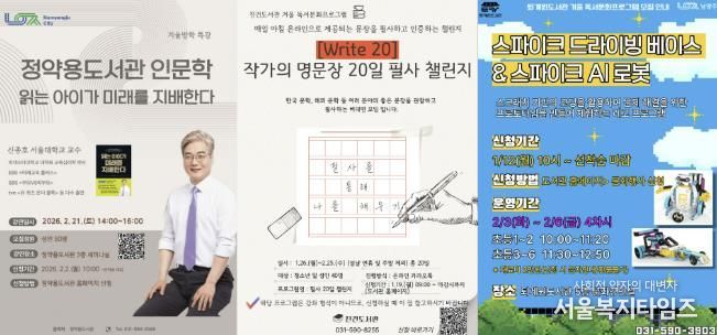 행사는 겨울 독서문화프로그램을 중심으로 △정약용 인문학 특강 △저자 강연 △시민 참여형 체험행사 등이 포함된다.