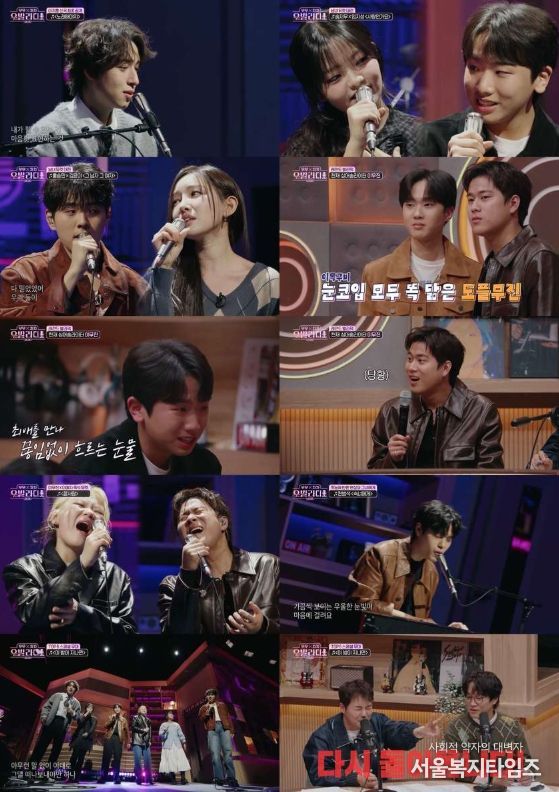 이어진 코너에서는 ‘남녀 듀엣’의 맞대결이 펼쳐졌다. 무무팀에서는 재소환 요청이 쇄도했던 임지성×송지우의 하울&제이의 ‘사랑인가요’를 선곡했다. 두 사람은 한층 자연스러워진 눈빛 교환과 풋풋한 감성으로 무대를 채웠고, 이를 지켜보던 출연진들은 “꿀 떨어진다”라며 들뜬 반응을 보여 웃음을 자아냈다.
