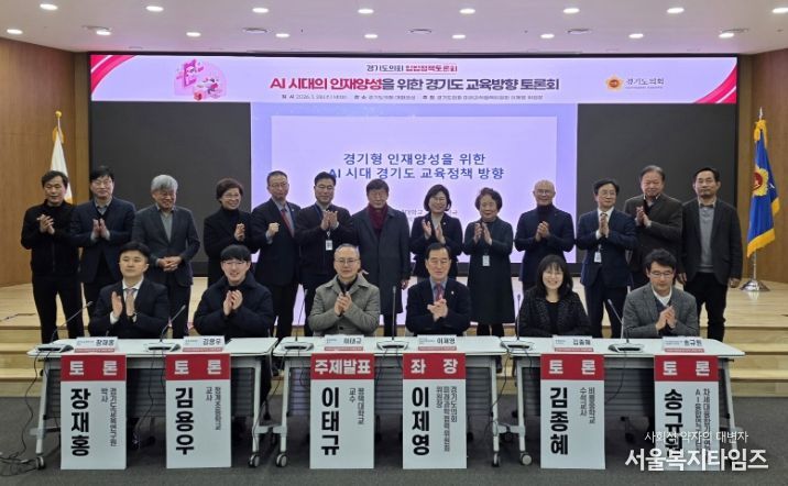 서울복지타임즈 이재연 기자 | 경기도의회 미래과학협력위원회 이제영 위원장(국민의힘, 성남8)이 28일 경기도의회 대회의실에서 열린 'AI 시대의 인재양성을 위한 경기도 교육방향 토론회'의 좌장을 맡아, 인공지능이 일상이 된 대전환 시대에 부합하는 경기 교육의 새로운 이정표를 제시했다.