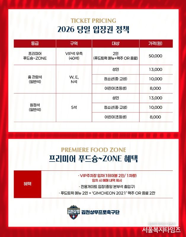 서울복지타임즈 이재연 기자 | 김천상무가 2026시즌 입장권 정책을 발표했다.