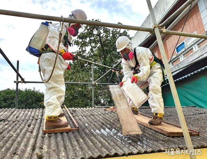 슬레이트 지붕 철거 후 새 지붕으로 교체해 주는 지붕개량 사업은 기초생활수급자와 취약계층을 우선으로 1동당 최대 1천만 원 내에서 지원된다.