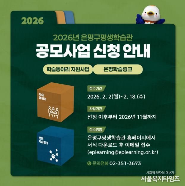 서울복지타임즈 이재연 기자 | 서울 은평구는 은평구평생학습관과 함께 ‘시민이 채우는 배움의 일상, 생동하는 학습도시 은평’을 조성하기 위해 시민참여형 공모사업 제안자를 오는 18일까지 모집한다고 밝혔다.
