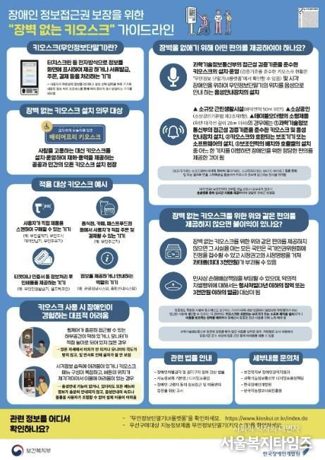 최근 개정된 ‘장애인차별금지 및 권리구제 등에 관한 법률’ 시행령에 따라, 공공과 민간에서 키오스크(무인정보단말기)를 설치·운영하는 경우 접근성 검증 기준을 충족하는 기기를 사용하고, 시각장애인을 위한 음성 안내 장치를 갖춰야 한다.