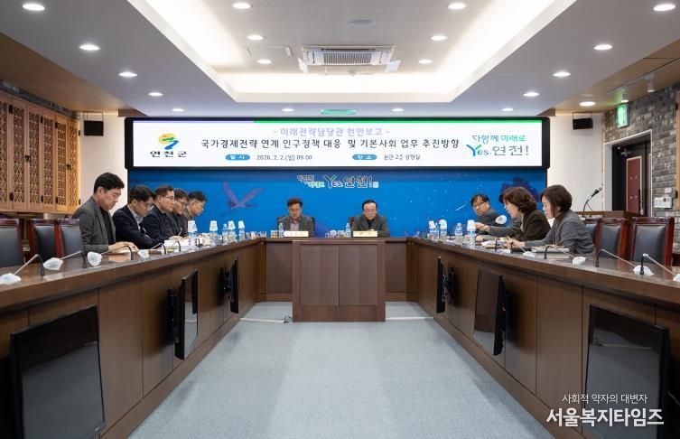 서울복지타임즈 이재연 기자 | 연천군은 지난 2일 군청 상황실에서 국가 경제성장전략과 연계한 인구정책 대응방안 및 기본사회 업무 추진방향을 논의하는 현안회의를 개최했다.