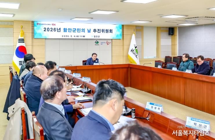 서울복지타임즈 이재연 기자 | 함안군은 2026년 함안군민의 날 행사를 성공적으로 개최하기 위해 지난 4일 군청 별관 3층 중회의실에서 조근제 함안군수를 위원장으로 한 ‘2026년 함안군민의 날 추진위원회’ 회의를 열었다고 밝혔다.