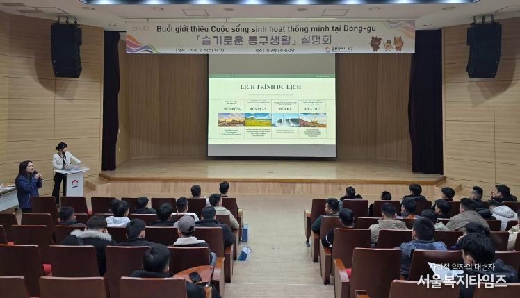 서울복지타임즈 이재연 기자 | 울산 동구는 2월 4일 오후 2시 동구청 5층 중강당에서 신규 입국한 베트남 국적 외국인 근로자 45명을 대상으로 지역 정착을 돕기 위한 ‘슬기로운 동구 생활’ 설명회를 진행했다.