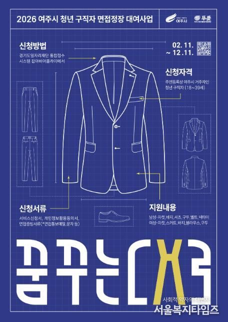 서울복지타임즈 이재연 기자 | 여주시청년활동지원센터 푸릇은 오는 2월부터, 여주시 구직 청년들을 대상으로 ‘꿈꾸는대로’ 청년 면접정장 대여사업을 진행한다고 밝혔다.