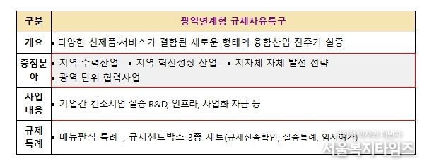 ‘광역연계형 규제자유특구’는 2개 이상의 지방자치단체가 연계·협력하여 특구를 공동 기획·운영하는 방식으로, 다양한 신제품·서비스가 결합된 형태의 융합 산업을 실증하는 새로운 유형의 규제자유특구 모델이다. 이를 통해 개별 지자체 단위에서 추진이 어려웠던 대규모·복합 실증이 가능해질 것으로 기대된다.
