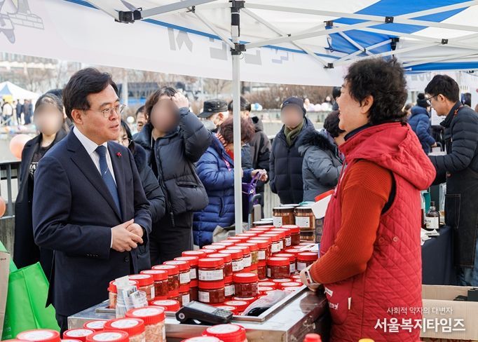 서울복지타임즈 이재연 기자 | 진교훈 서울 강서구청장이 5일 마곡광장에서 열린 ‘설맞이 농특산물 직거래장터’를 찾았다.